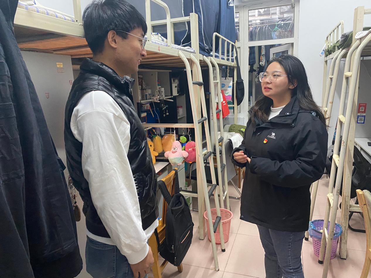 为深入了解员工的思想动态,塑造良好的教育文化氛围,更要贯彻落实三全育人、服务育人的理念。11月10日,公司研究生辅导员曹洋带领研究生干部走进宿舍,对在校研究生的思政建设、学业规划、安全教育等情况进行了解,开展研究生宿舍文明教育系列活动。