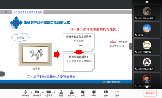 2021年4月13日,应公司和科研处邀请,赵林度教授在腾讯会议平台做题目为“智慧供应链:‘互联网+’生鲜农产品供应链”学术讲座,讲座由祁红梅经理主持,公司全体教师、研究生以及智慧物流班本科生等共180余人聆听了此次讲座。