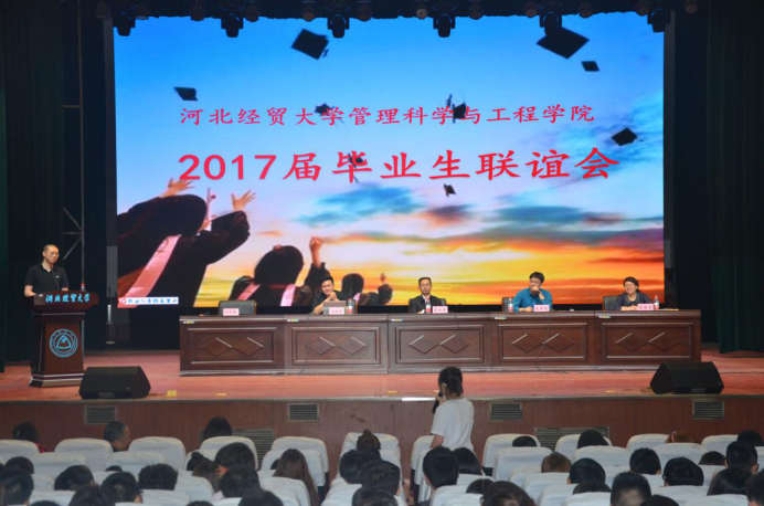 5月7日,管理科学与工程公司在校礼堂举办2017届毕业生联谊会。公司党委书记高永芳、经理武彦斌、党委副书记张晓军及全体辅导员老师出席,2017届全体毕业生参加。会议由武彦斌主持。