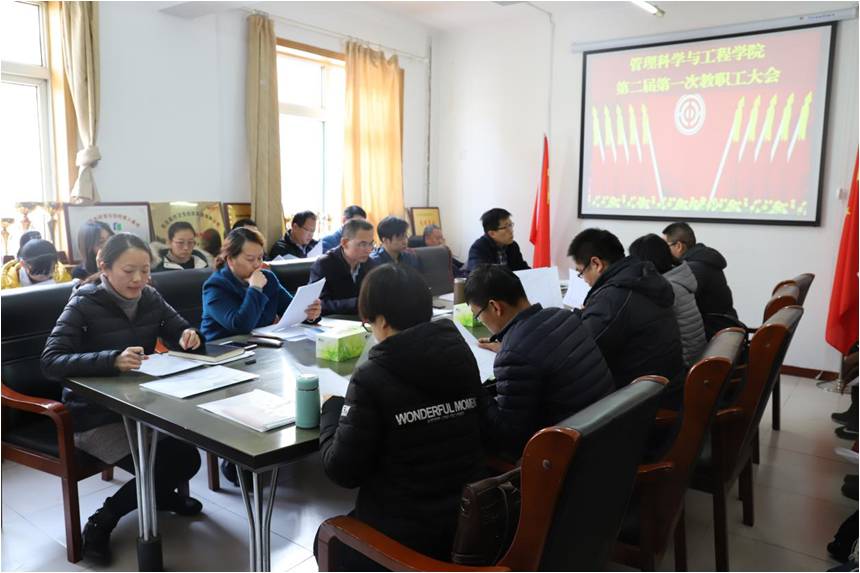 12月28下午,管理科学与工程公司在第三办公楼134会议室召开了第二届第一次教职工大会。公司党委书记高永芳、经理武彦斌率全体教职工参加本次大会。会议由公司党政办公室主任孟祥燕主持。