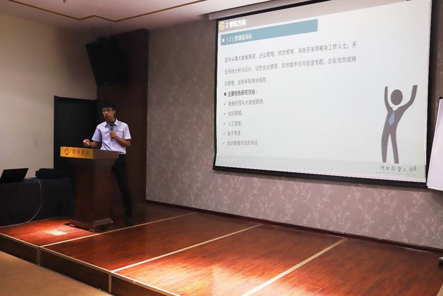 首先,宋晓刚从办学优势、办学特色、招考条件、培养方式等方面向与会人员进行了讲解;然后,考生就自己关心的问题与在场的老师进行了面对面的交流;最后,宋晓刚指出,经贸大的工程管理硕士“学员广、团队强、方向优”,鼓励大家积极报考。