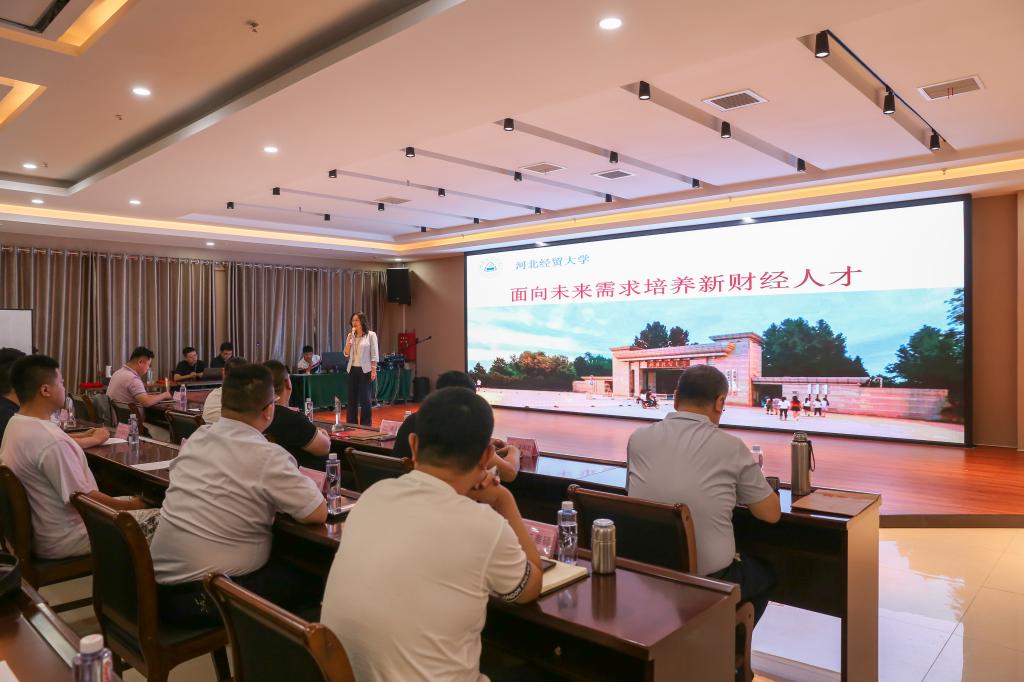在河北省青年民营企业家商会第一届四次理事会上,祁红梅做了《面向未来需求培养新财经人才》的专题演讲,首先全面介绍了db真人的办学宗旨、学科优势专业建设等情况,重点介绍了以新财经实验班为代表的面向经济社会未来发展培养新财经人才的战略和具体实现路径;其次以管理科学与工程公司为代表介绍了二级公司的专业建设、人才培养和社会服务等情况;最后介绍了以需求为导向的员工就业、用人单位满意度等情况,并做了2021年本科招生详情宣讲。