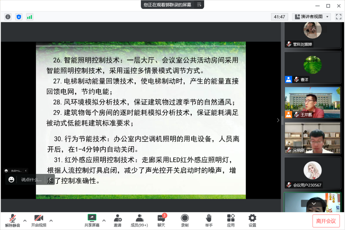 2022年9月23日晚上,应公司和科研处邀请,公司社会导师、河北建工集团有限责任公司副总工程师郭群录在腾讯会议做了题为“被动式超低能耗建筑节能技术”的学术讲座。讲座由副经理王芹鹏主持,工程管理系全体教师及研究生近百人参加。