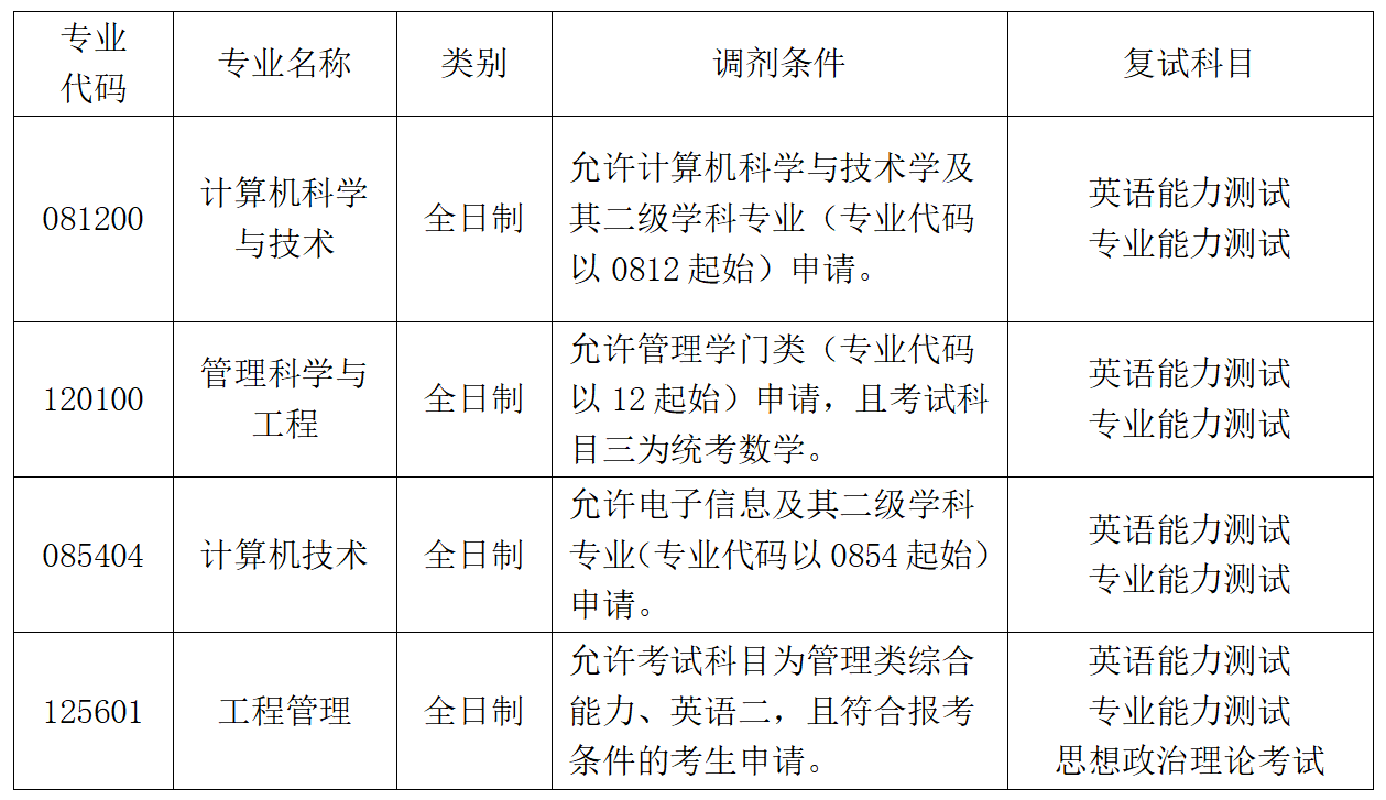 其余专业的调剂条件见上表。