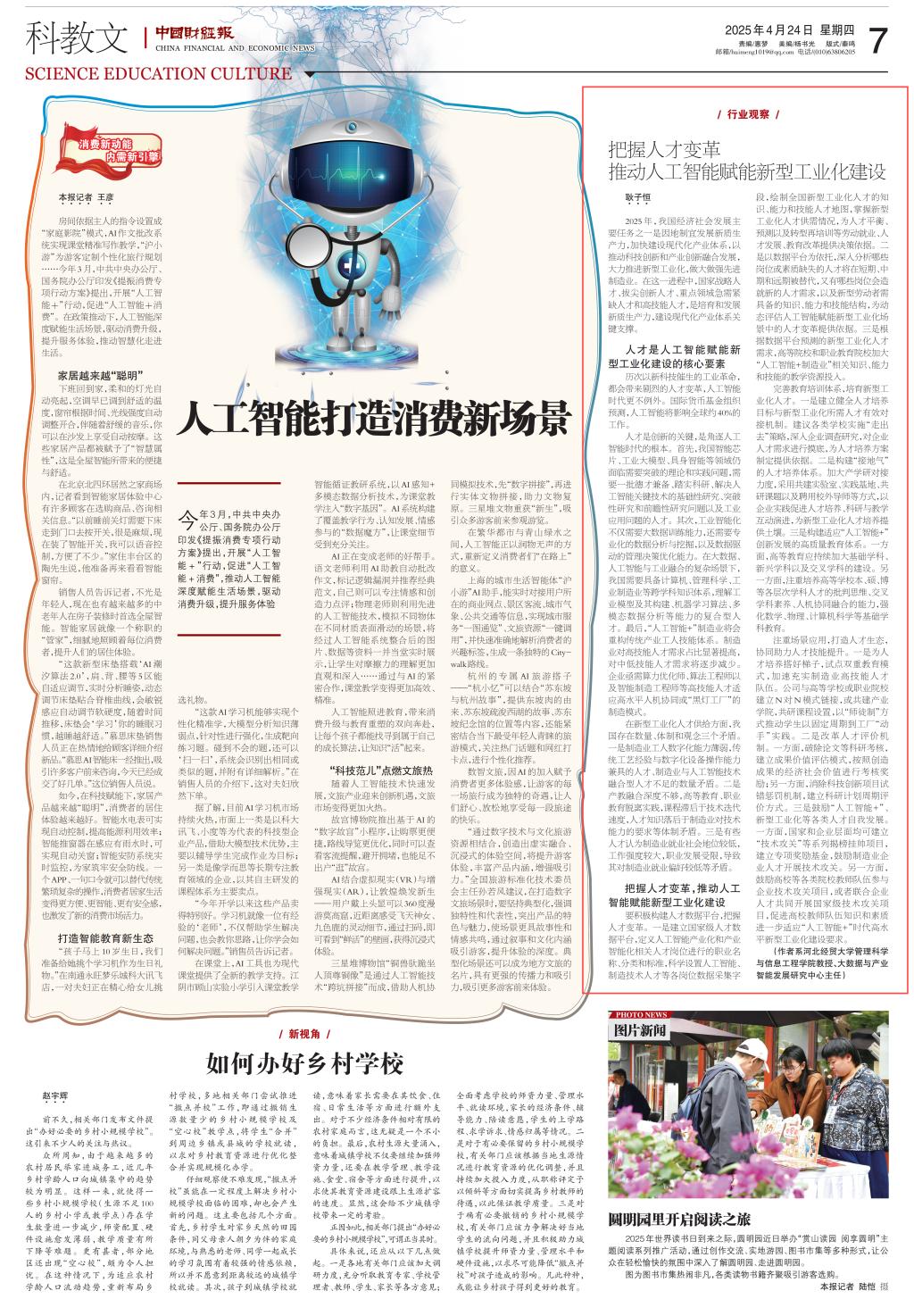 2025年4月24日,《中国财经报》第7版(科教文版)刊发db旗舰耿子恒教授的理论文章《把握人才变革 推动人工智能赋能新型工业化建设》。