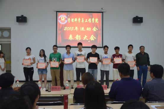 5月8日,管理科学与工程公司于老员工活动中心2号厅召开了第二十届田径运动会表彰大会,公司党委书记刘风长,党委副书记张晓军,副经理许世瑛出席会议,公司部分老师及2013、2014级员工参加会议。