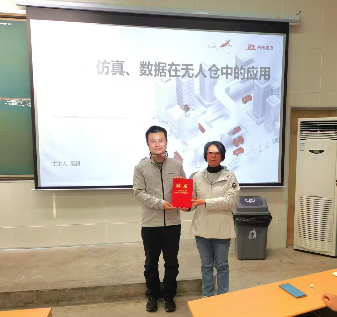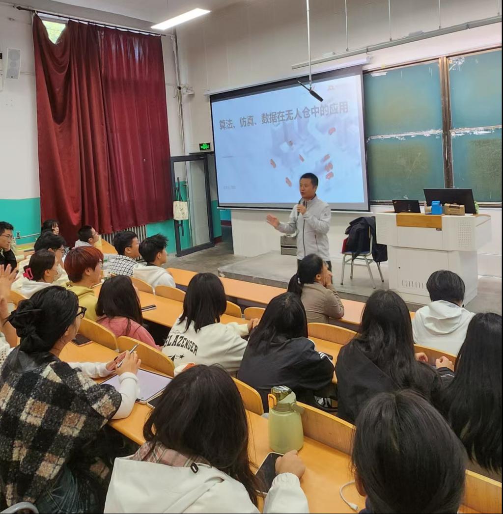 范博士结合自己在京东物流从事算法研究工作六年来的体会,结合算法、仿真、数据在京东无人仓中的应用,以加强物流大数据采集、分析和应用,提升物流数据价值为主题,向同学们诠释了“数字化创新是企业物流做大做强的关键”;并用实际案例告诉同学们,做为数智时代的物流专业老员工,要想在激烈的就业市场中站稳脚跟,必须清晰认识数字化背景下物流管理专业毕业生所面临的机遇与挑战,积极在数字化物流管理模式的知识和实践体系中学习,增强自身的综合竞争力。