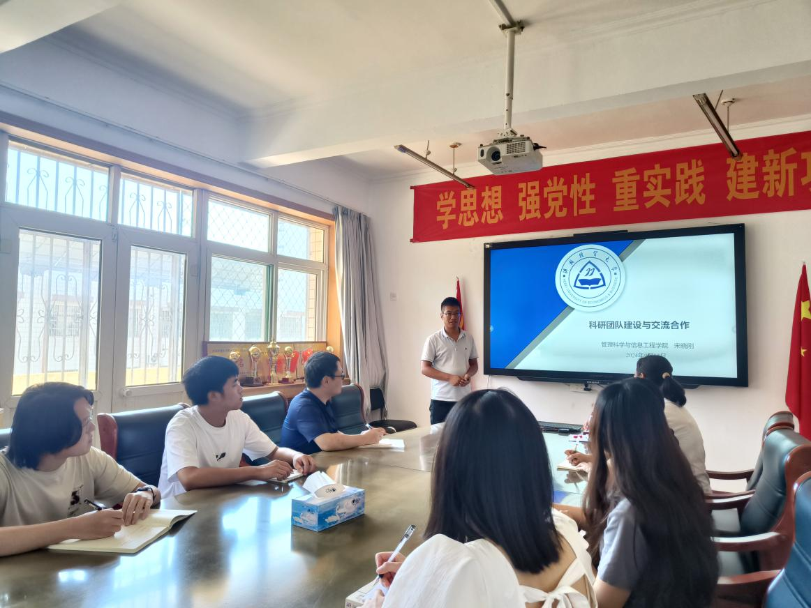 宋晓刚从“对外经济贸易大学国际经济研究院简介”、“交流期间主要工作”、“他山之石”、“心得感悟”等几个方面来介绍了自己在对外经济贸易大学交流期间,有关科研团队建设、高质量科研成果产出、公司产品、开展有组织的科研等方面的心得感悟。他指出无论是老师还是员工,都应该树立标杆,只有高标准要求自己,才能高质高量产出科研成果。他山之石,可以攻玉,与会教师积极参与讨论,探讨自己的心得和体会。