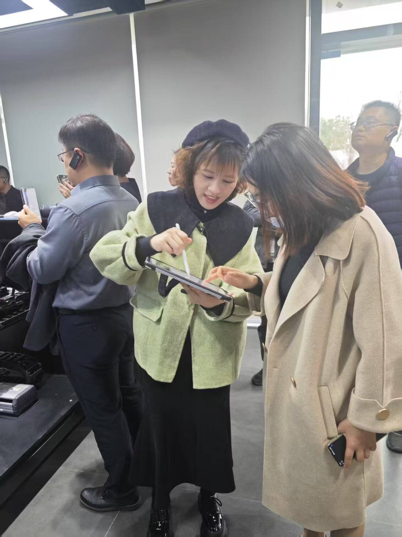 图为2023级MEM研究生王乐(右一)在百世物流科技(中国)有限公司了解黑灯工厂案例