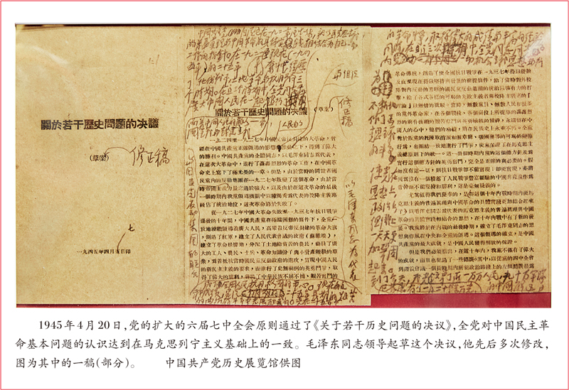 我们党通过的关于历史问题的两个决议,实事求是地总结正反两方面历史经验,为坚持真理、修正错误,借鉴经验、汲取教训,提供了基本遵循和光辉典范。党的扩大的六届七中全会原则通过的《关于若干历史问题的决议》,总结了建党以后特别是六届四中全会至遵义会议前这一段党的历史及其基本经验教训,阐述了错误路线的严重危害,高度评价了毛泽东同志运用马克思主义基本原理解决中国革命问题的杰出贡献,使全党对中国民主革命基本问题的认识达到在马克思列宁主义基础上的一致。党的十一届六中全会通过的《关于建国以来党的若干历史问题的决议》,科学总结了新中国成立以后社会主义革命和建设的历史经验,对一些重大历史事件和重要历史人物作出了实事求是的评价,特别是实事求是评价毛泽东同志的历史地位,充分肯定毛泽东思想作为党长期坚持的指导思想的伟大意义,科学概括毛泽东思想多方面的内容和活的灵魂——实事求是、群众路线、独立自主,对凝聚和激励全党全国各族人民团结一致向前看发挥了重要作用。历史证明,总结和研究我们党正反两方面的历史经验,对把党和人民的事业继续推向前进至关重要。